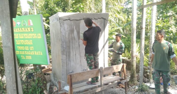 Terik Matahari Tak Surutkan Semangat Satgas TMMD Bangun Fasilitas Warga Berita, Pertahanan|23/02/2026oleh admin
