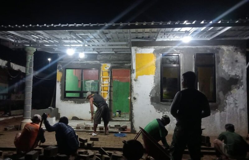 Pacitan, – Guna mempercepat dalam pembangunan rehab polindes Desa Petungsinarang, Di bawah pimpinan Dan SSK Lettu Arh Edy purwanto Satgas TNI Manunggal Membangun Desa (TMMD) ke-126 Kodim 0801/Pacitan terus mengerahkan tenaga dan semangat hingga larut malam pada hari Selasa (4/11), hal tersebut untuk meningkatkan kesejahteraan masyarakat melalui pembangunan infrastruktur di Desa Perungsinarang.