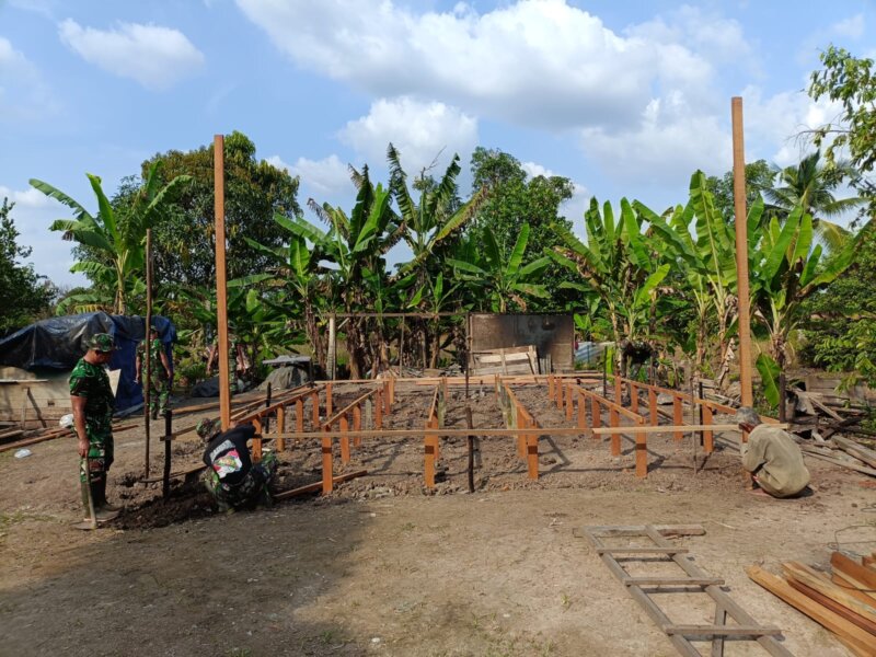 BARITO KUALA – Pembangunan rumah tidak layak huni (RTLH) milik Kai Salamun di Desa Tumih, Kecamatan Wanaraya, terus menunjukkan kemajuan signifikan. Program yang menjadi salah satu sasaran fisik tambahan dalam kegiatan TNI Manunggal Membangun Desa (TMMD) ke-126 Kodim 1005/Barito Kuala ini kini sudah memasuki tahap penting dalam proses konstruksi.