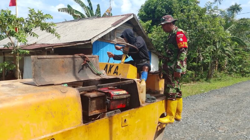 Selain memantau pembangunan, Kapten Tri juga melakukan pengecekan terhadap alat berat yang digunakan dalam pemadatan material timbunan.