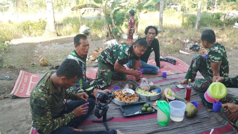 Anggota Pendim 1005/Barito Kuala Nikmati Makan Siang Bersama Satgas TMMD dan Warga