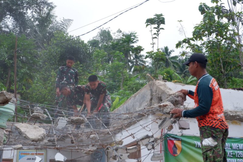 Rehab dilakukan karena kondisi bangunan lama sudah kurang layak digunakan sebagai fasilitas kesehatan. Personel Satgas TMMD bersama masyarakat terlihat bergotong royong membongkar bagian yang rusak dan menyiapkan material untuk pembangunan kembali.