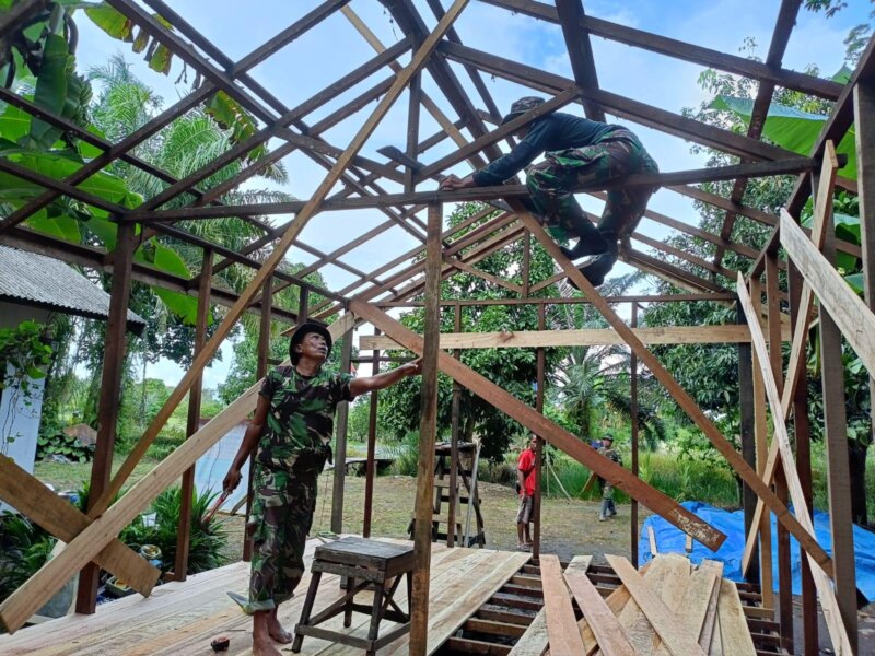 BARITO KUALA — Pelaksanaan TNI Manunggal Membangun Desa (TMMD) Ke-126 yang dipimpin Kodim 1005/Barito Kuala kembali menunjukkan perannya sebagai wahana sinergi pembangunan dan stabilitas wilayah. Salah satu fokus kegiatan fisik adalah rehabilitasi Rumah Tidak Layak Huni (RTLH) sasaran 2 milik Bapak Kai Zaini di Desa Tumih, yang kini memasuki fase pemasangan struktur utama.
